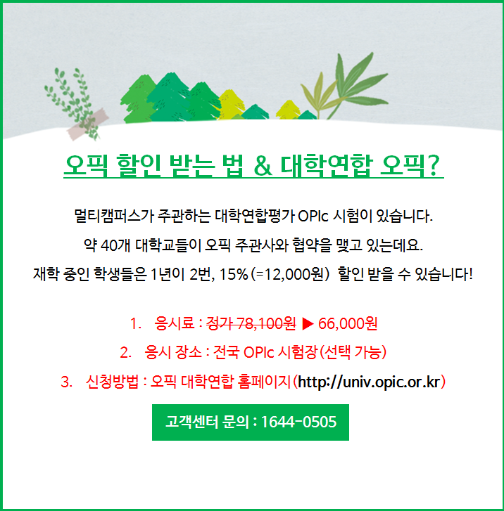 오픽을 준비하고 계신 대학생분들께 12,000원을 할인 받는 방법을 소개해 드리려고 합니다.