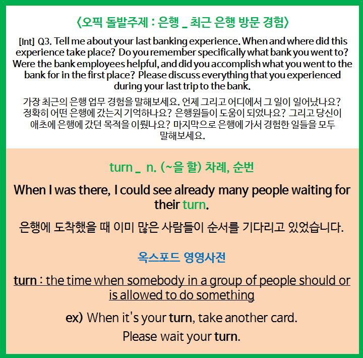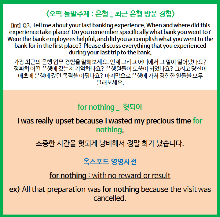 은행 돌발문제는 오픽 시험 초창기부터 지금까지