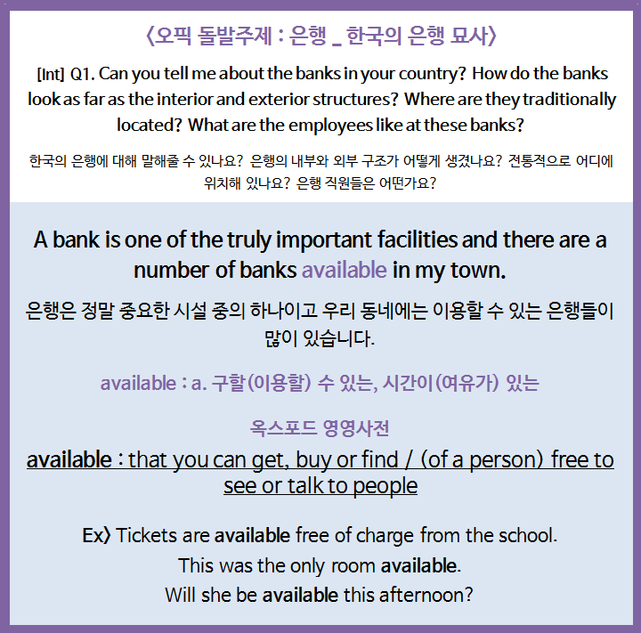은행 돌발문제는 오픽 시험 초창기부터 지금까지
